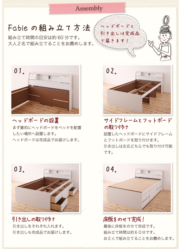 ※お客様組み立て品(引出し・ヘッドボードは完成品)