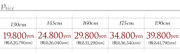 190cm:39800円(税込41790円)