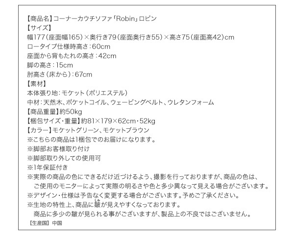 【商品名】コーナーカウチソファ【Robin】ロビン