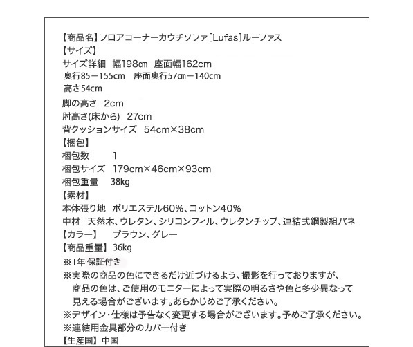 【商品名】フロアコーナーカウチソファ【Lufas】