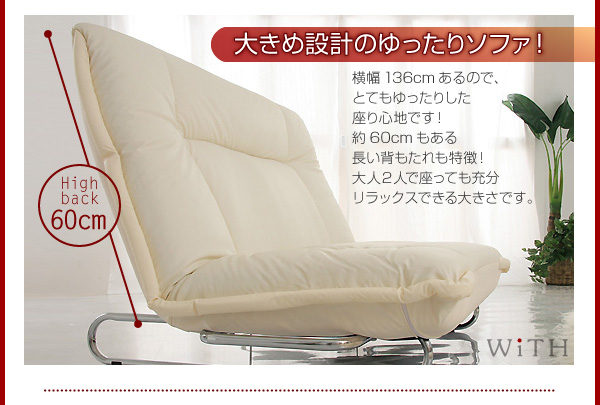 このソファは、幅が136cmもあるので とてもゆったりとした座り心地を実感できます。 座面もとっても大きいので、十分にリラックスできます。