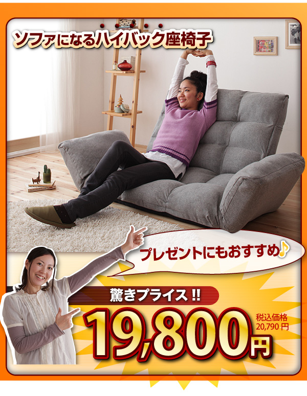 [座面高] ソファ時:(約)26cm 座椅子時:(約)17cm