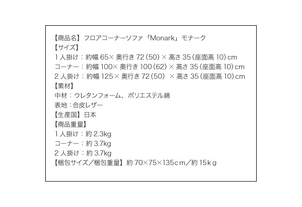 コーナー:約幅100×奥行き100(62)×高さ35(座面高10)cm