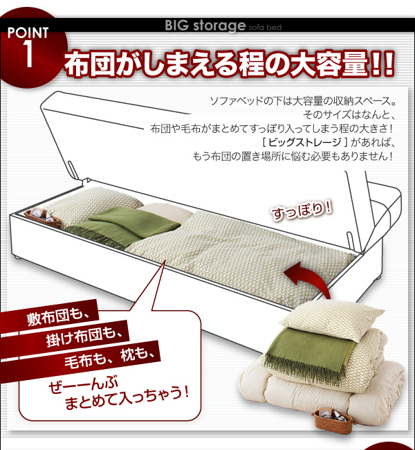 【商品名】ふとんがしまえる!大容量収納ソファベッド【BIG stooage】ビッグストレージ