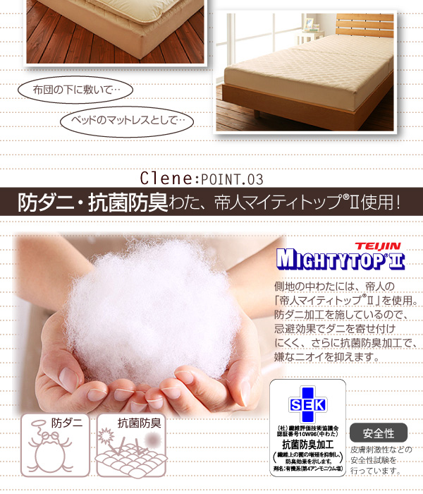Quality.....防ダニ・抗菌防臭の機能綿「帝人マイティトップR」を使用!