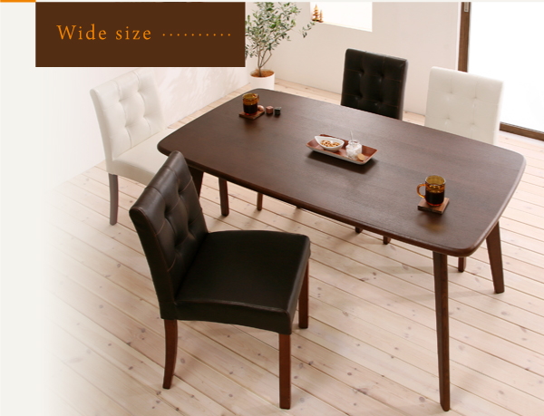 ・5点セット:ダイニングテーブル(W150)、レザーチェア4脚