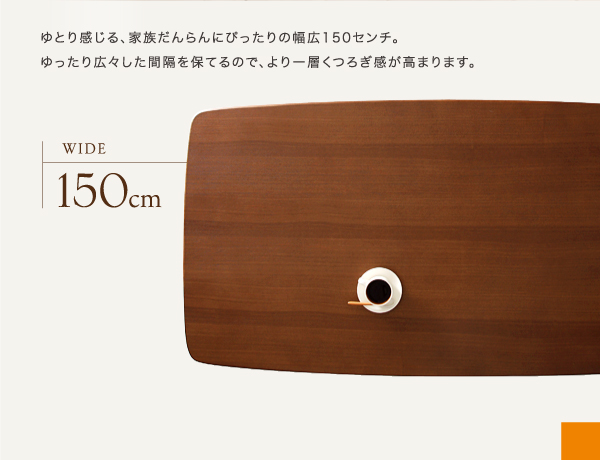 ゆとり感じる、家族だんらんにぴったりの幅広150センチ。