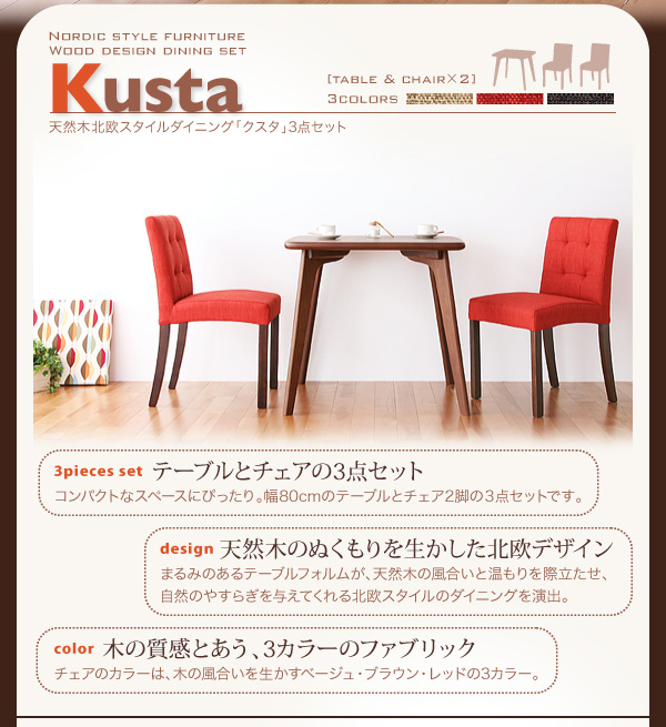 チェアのカラーは、木の風合いを生かすベージュ・ブラウン・レッドの3カラー。