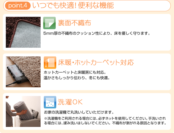 【機能】床暖・ホットカーペット対応/洗濯OK