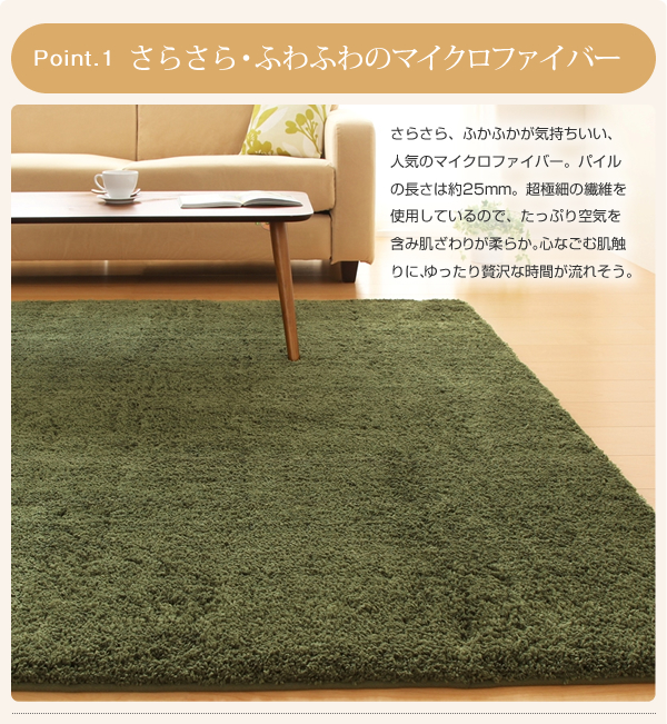 さらさら、ふかふかが気持ちいい、人気のマイクロファイバー。パイルの長さは約25mm。超極細の繊維を使用しているので、たっぷり空気を含み肌ざわりが柔らか。心なごむ肌触りに、ゆったり贅沢な時間が流れそう。