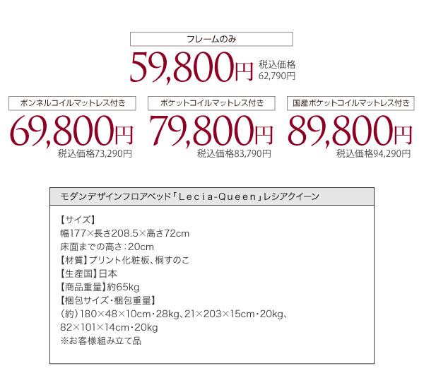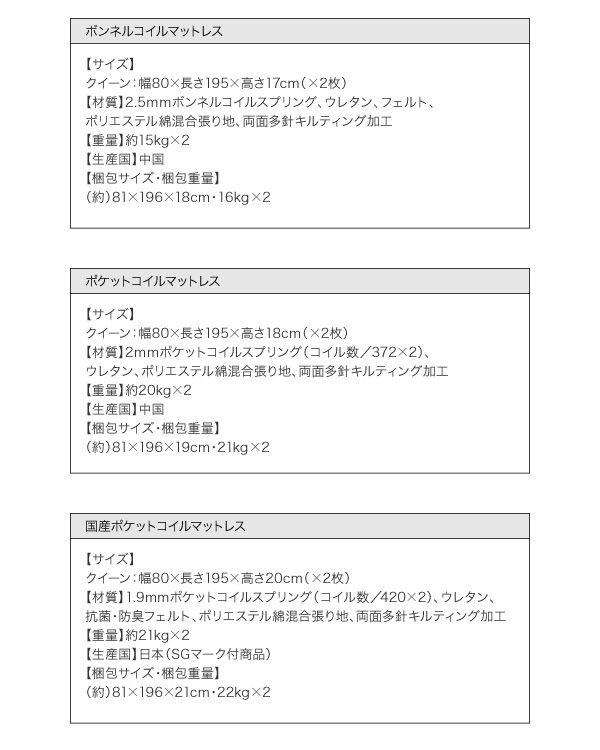 国産ポケットコイルマットレス付き:89800円(94290円)