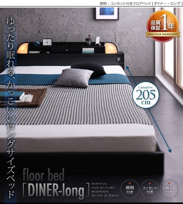 プリント化粧板(ヘッドボード)ウレタン塗装仕上げ、合成皮革(サイドフレーム、フットボード)、10W白熱灯×2、1500W2口コンセント