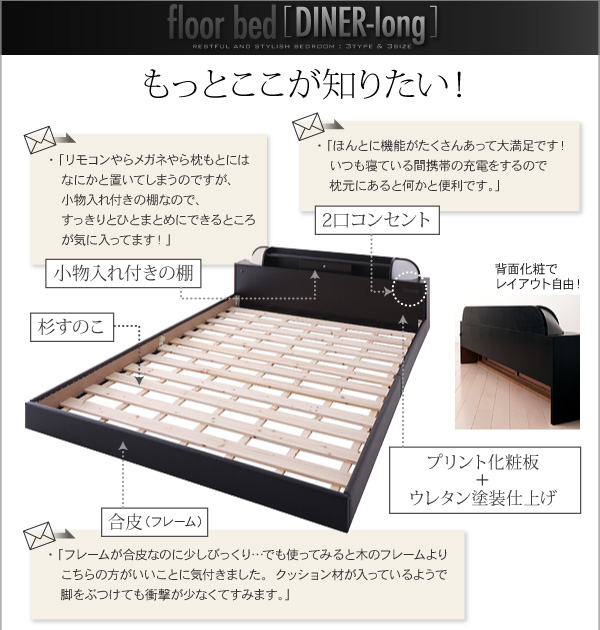 安価なベッドはプリント紙のみのことが多く、汚れや傷に弱いという難点があります。しかしダイナーのヘッドボードはお手入れに手間の掛からないウレタン塗装仕上げ。少し艶のある表情で高級感を醸し出します。