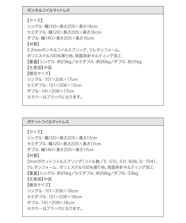【ボンネルコイルマットレス&ポケットコイルマットレス】