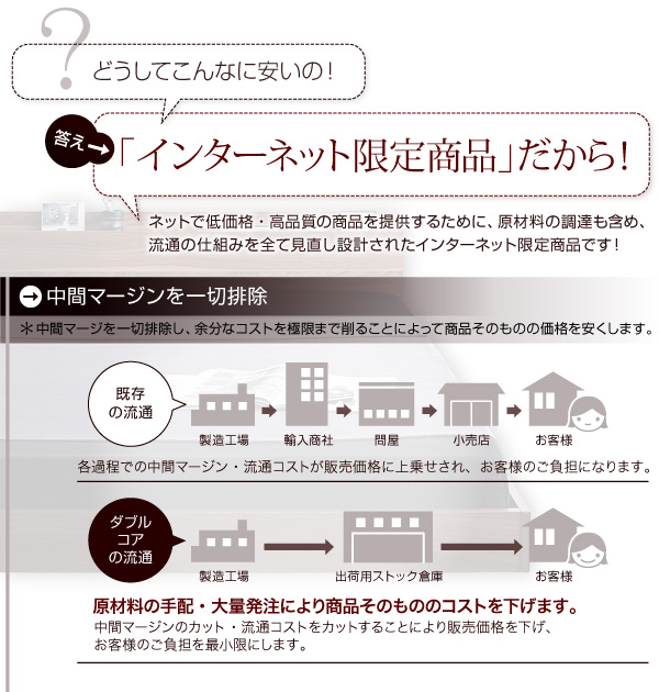 シングル:32800円(税込34440)、セミダブル:42800円(税込44940)、ダブル:52800円(税込55440)