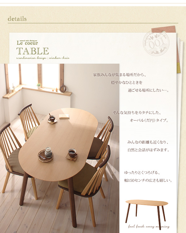 そんな気持ちをカタチにした、オーバル(だ円)タイプ。みんなの距離も近くなり、自然と会話がはずみます。ゆったりとくつろげる、幅150センチの広さも嬉しい。