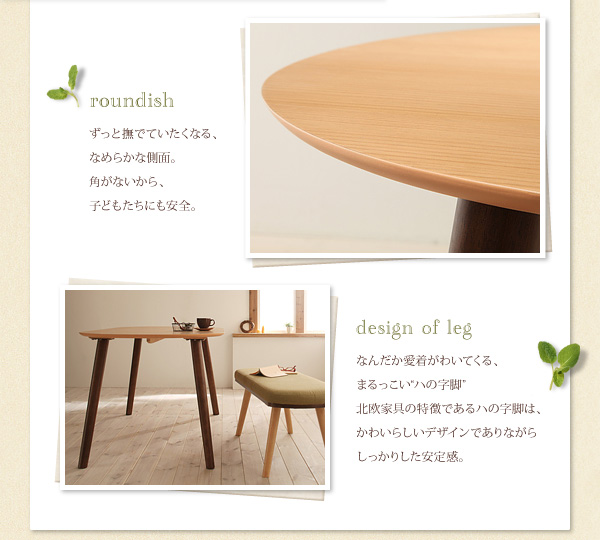 なんだか愛着がわいてくる、まるっこい“ハの字脚”。北欧家具の特徴であるハの字脚は、かわいらしいデザインでありながら、しっかりした安定感。