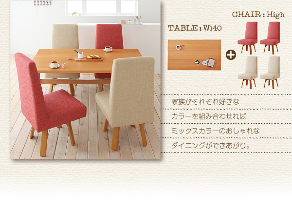 テーブル・チェア・カラーを組み合わせて、自分のお気に入りのダイニングを楽しめます。