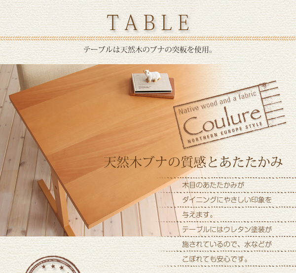 テーブルにはウレタン塗装が施されているので、水などがこぼれても
