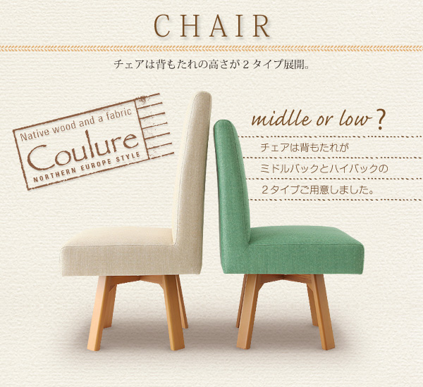 チェアは背もたれがミドルバックとハイバックの2タイプご用意しました。