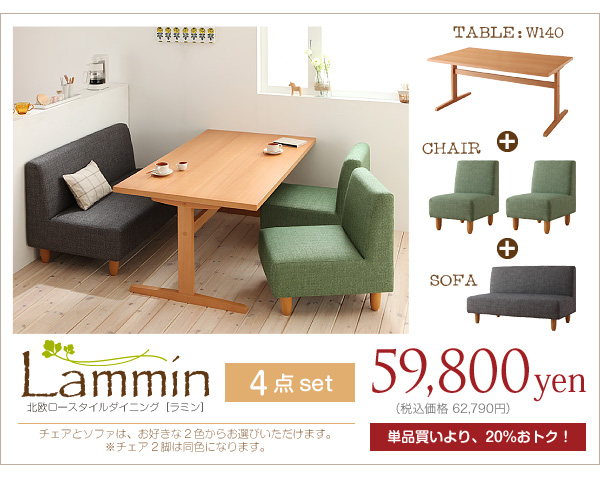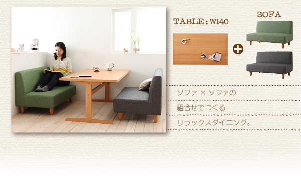 【4点セット(テーブルW140+チェア×2+ソファ)】