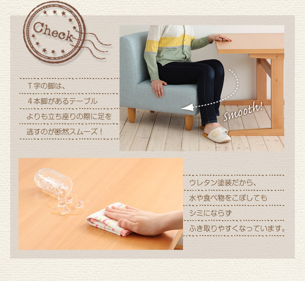 T字の脚は4本脚があるテーブルよりも立ち座りの際に足を