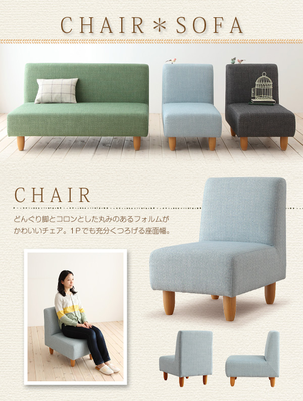 どんぐり脚のコロンとした丸みのあるフォルムがかわいいチェア。