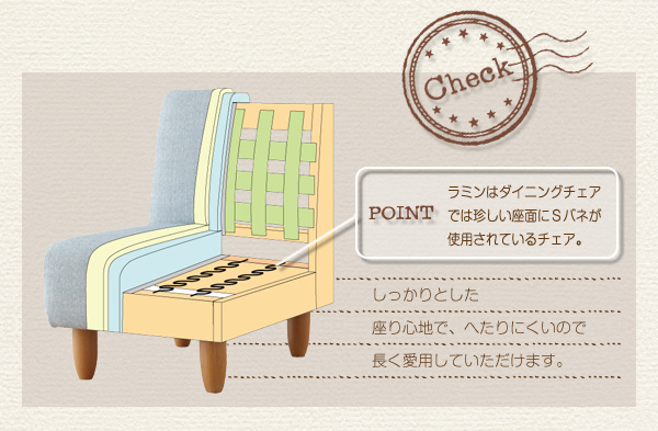 ラミンはダイニングチェアでは珍しい座面にSバネが使用されている