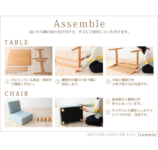 届いたら脚の取り付けだけで、すぐに使用していただけます。
