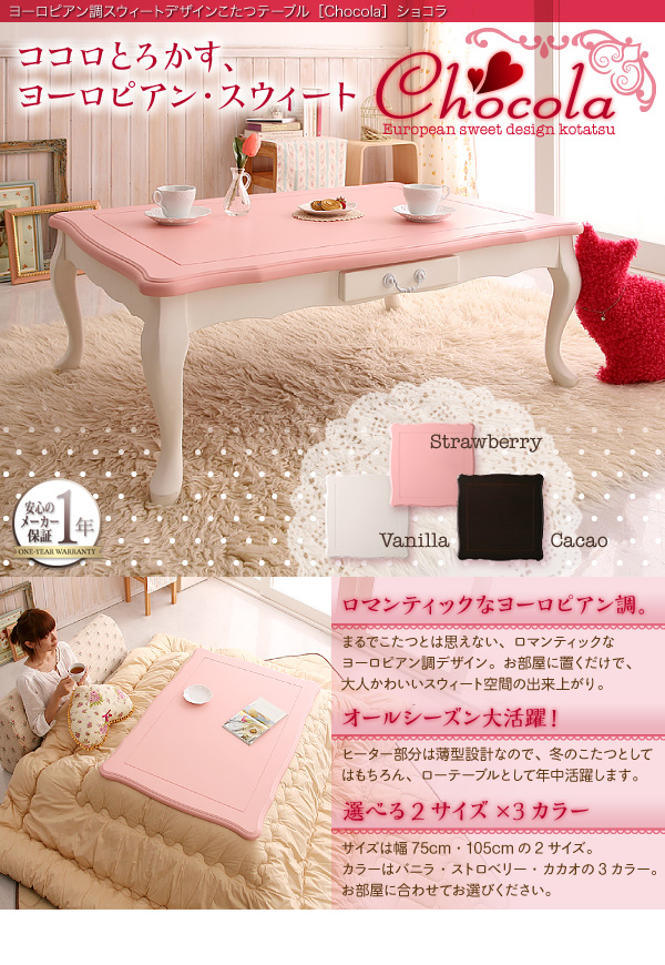 ヨーロピアン調スウィートデザインこたつテーブル【Chocola】ショコラ 長方形(105×75)