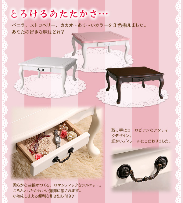 ヨーロピアン調スウィートデザインこたつテーブル【Chocola】ショコラ 正方形(75×75)