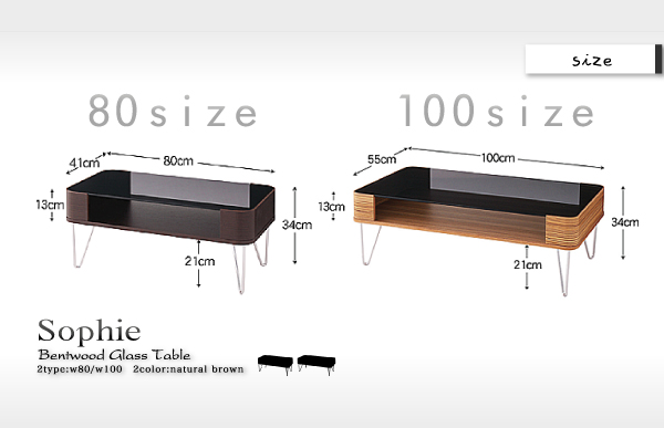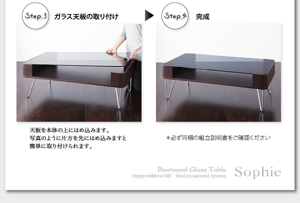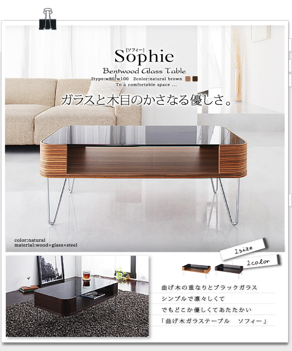 曲げ木ガラステーブル【Sophie】ソフィー