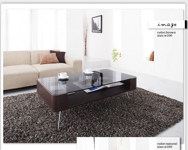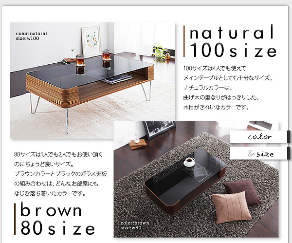 ブラウンカラーとブラックのガラス天板の組み合わせは、どんなお部屋にもなじむ落ち着いたカラーです。