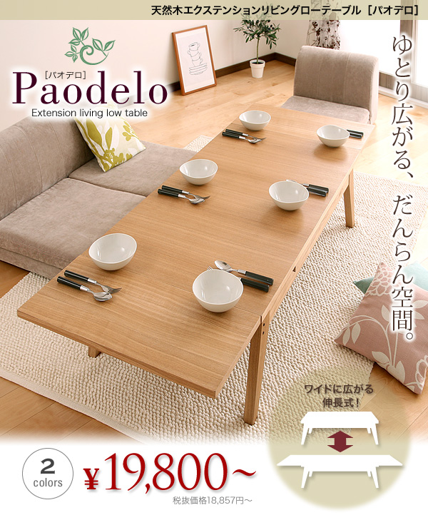 天然木エクステンションリビングローテーブル【Paodelo】パオデロ
