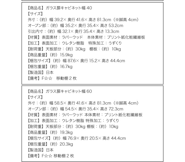 ガラス扉キャビネット幅40