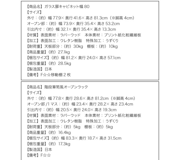 ガラス扉キャビネット幅80