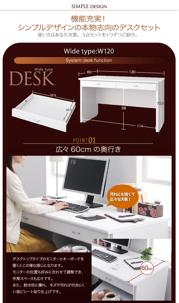 →暮らしにジャストの幅120cm!引き出しが便利なシンプル設計♪