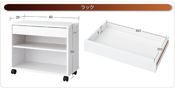 ラック/引出内寸:約52.5×D23.5×H5(6.5)