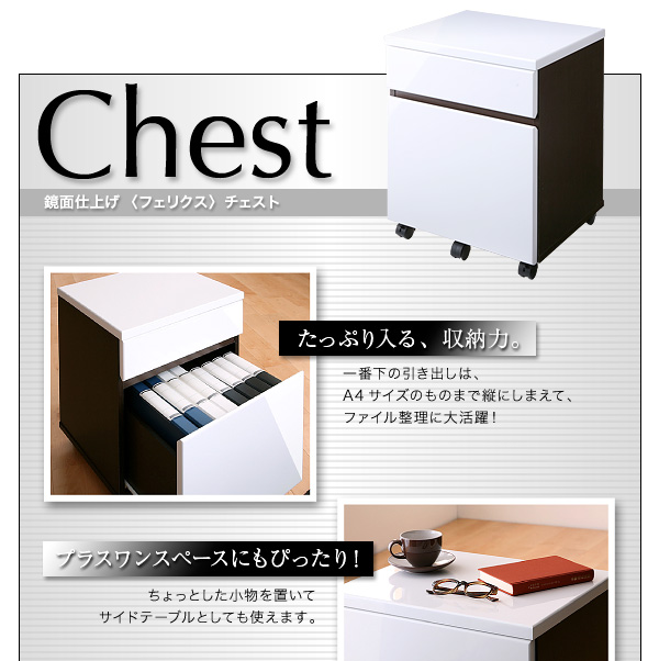 美しい光沢に思わず目を奪われる、鏡面仕上げ。置くだけでお部屋の印象をランクアップ。