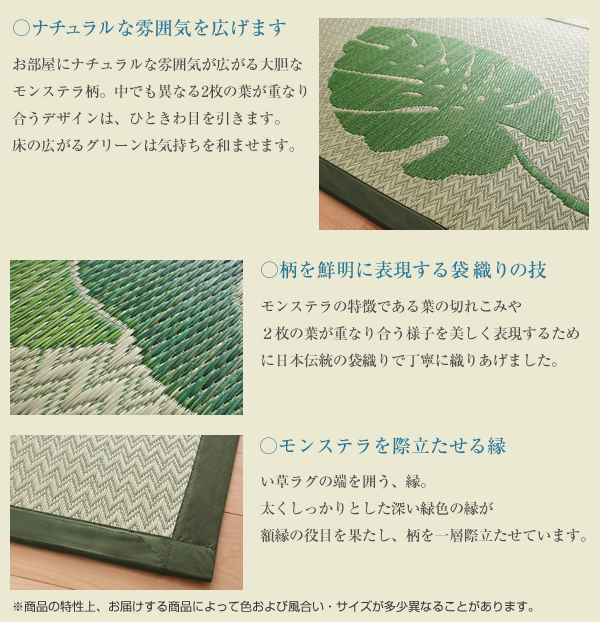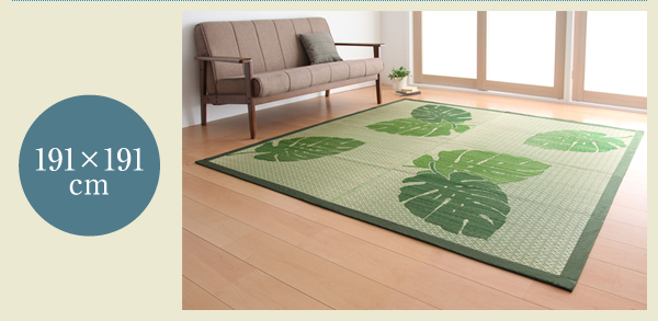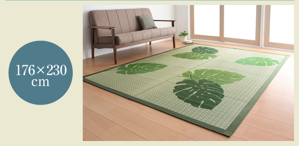 【商品名】モンステラ柄い草ラグ 【緑夏】りょくか