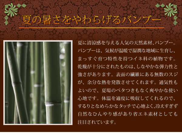 癒しのアジアンテイストを満喫でき、高級感あるお部屋を演出してくれるバンブー。