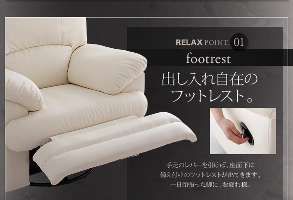 昼下がり、ちょっとお昼寝したいと思った時に、後ろにもたれかかれば、そのままリクライニング。テレビを見るのにも、ゆったり寛いだ姿勢で見られるのは至福の時。