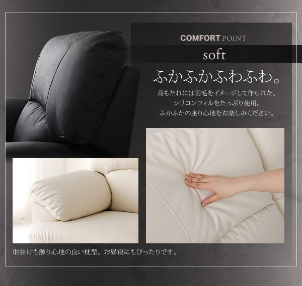 背もたれには羽毛をイメージして作られた、シリコンフィルをたっぷり使用。ふかふかの座り心地をお楽しみください。