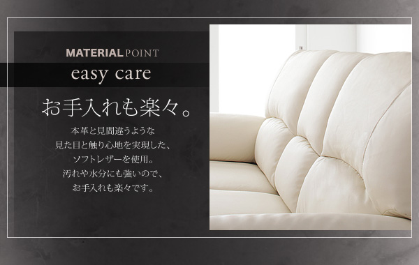 ◆汚れに強く、触り心地の良いソフトレザー仕様。