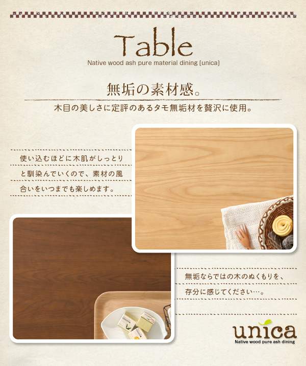 • 天然木タモ無垢材ダイニング【unica】ユニカ 4点セット(テーブル+チェア×2+ベンチ)