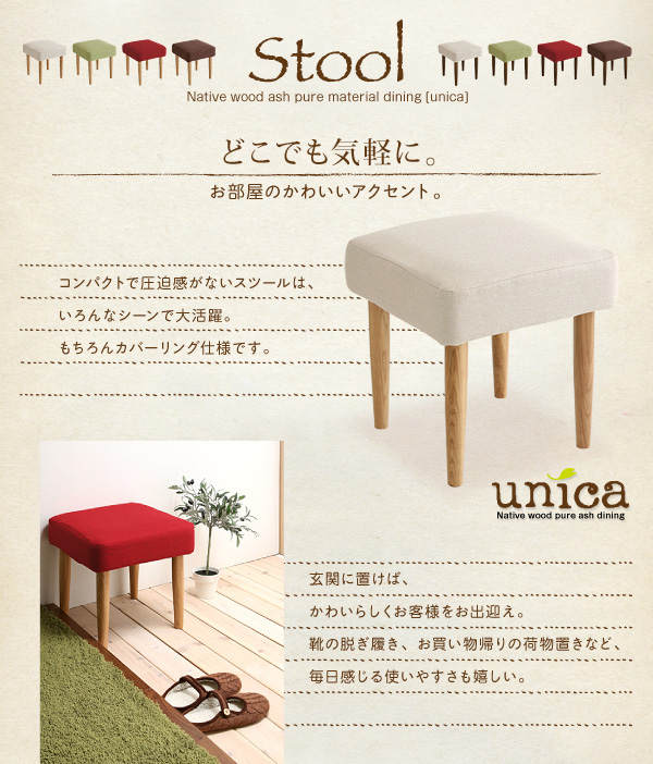 玄関に置けば、かわいらしくお客様をお出迎え。靴の脱ぎ履き、お買い物帰りの荷物置きなど、毎日感じる使いやすさも嬉しい。