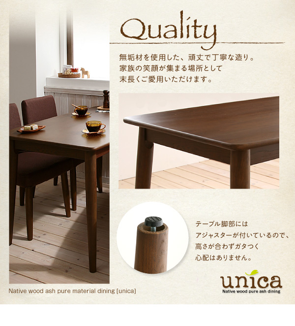 無垢材を使用した、頑丈で丁寧な造り。家族の笑顔が集まる場所として末長くご愛用いただけます。