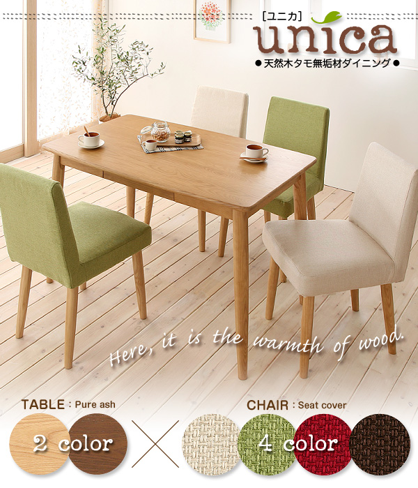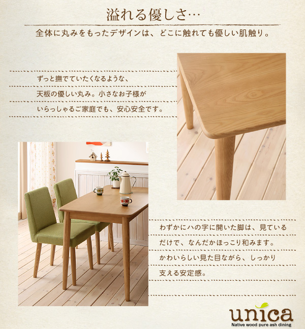 天然木タモ無垢材ダイニング【unica】ユニカ 4点セット(テーブル+チェア×2+ベンチ)