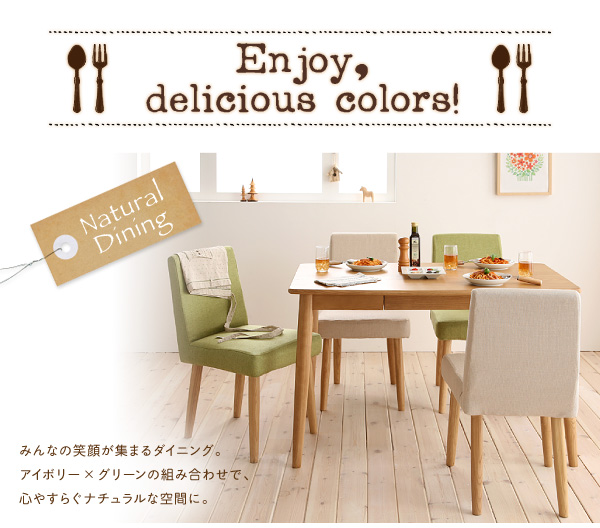 みんなの笑顔が集まるダイニング。アイボリー×グリーンの組み合わせで、心やすらぐナチュラルな空間に。