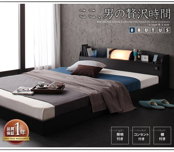 1灯照明とスライド式の1口コンセント。CDや本も置ける棚もついて便利が手に届く充足感です。